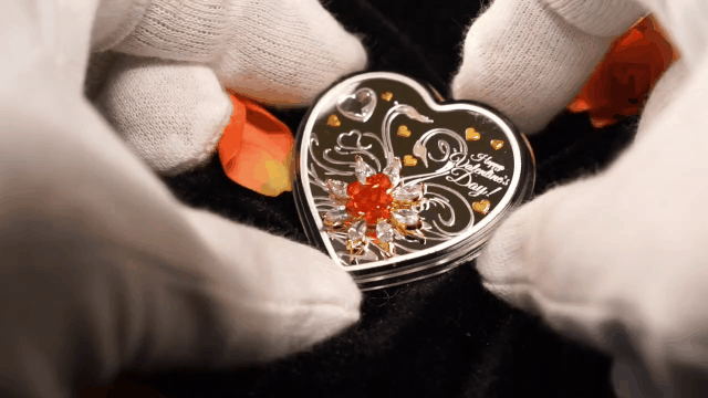 不仅在国内,国外心形纪念币也很火,尤其是情人节系列心形银币!