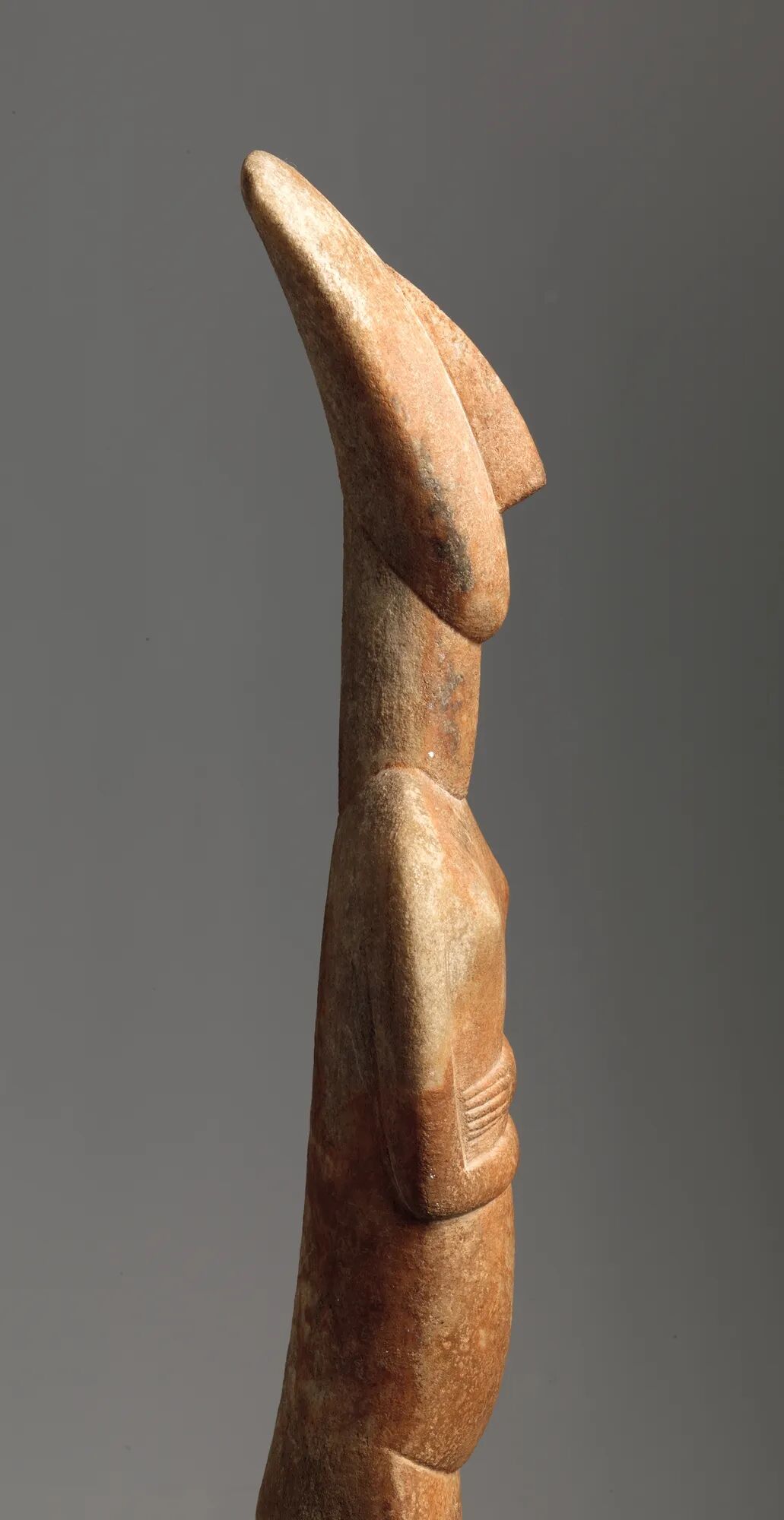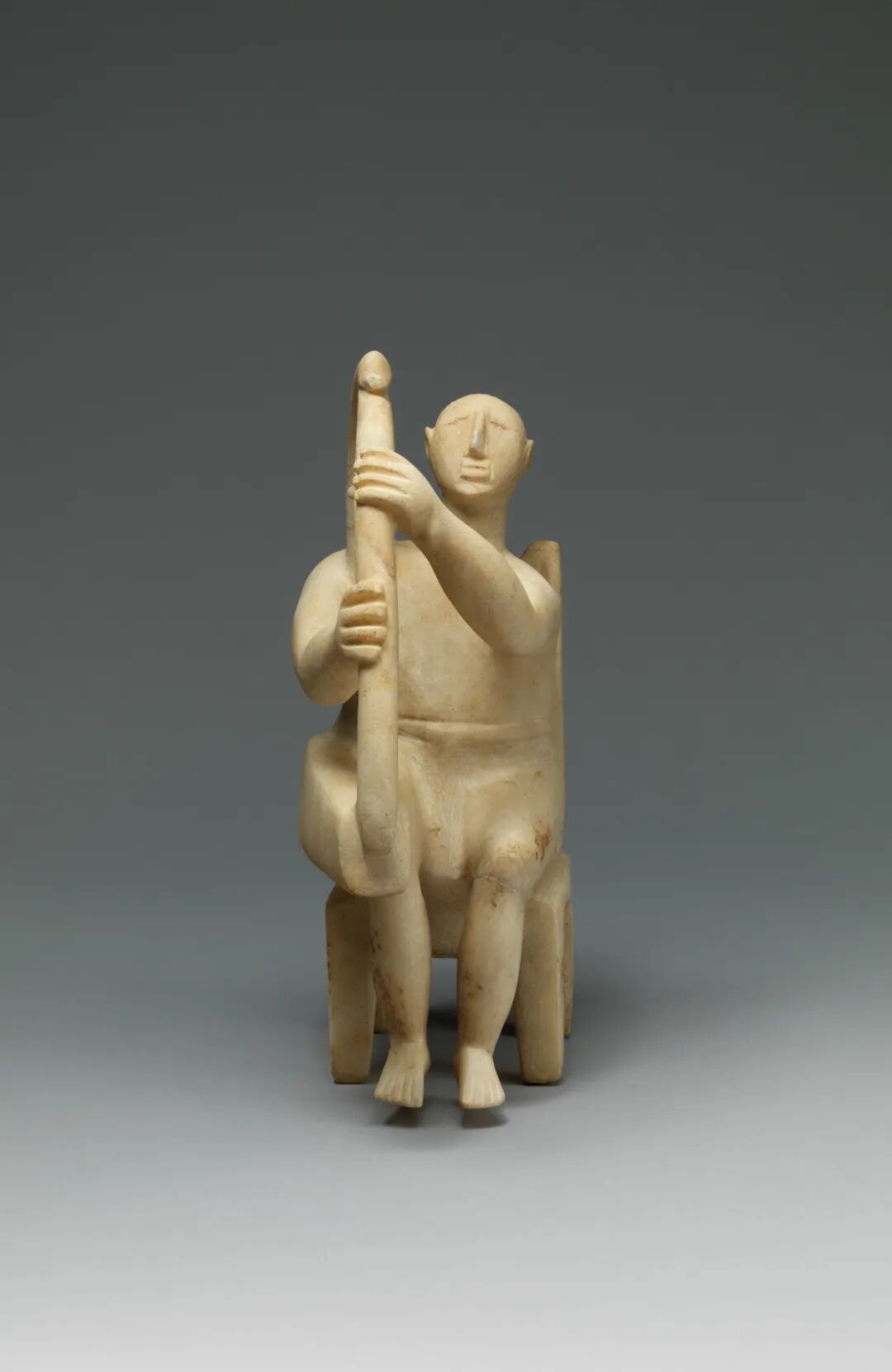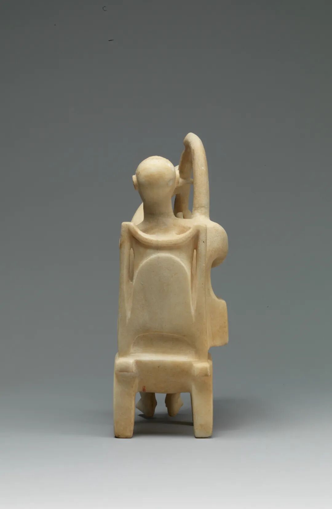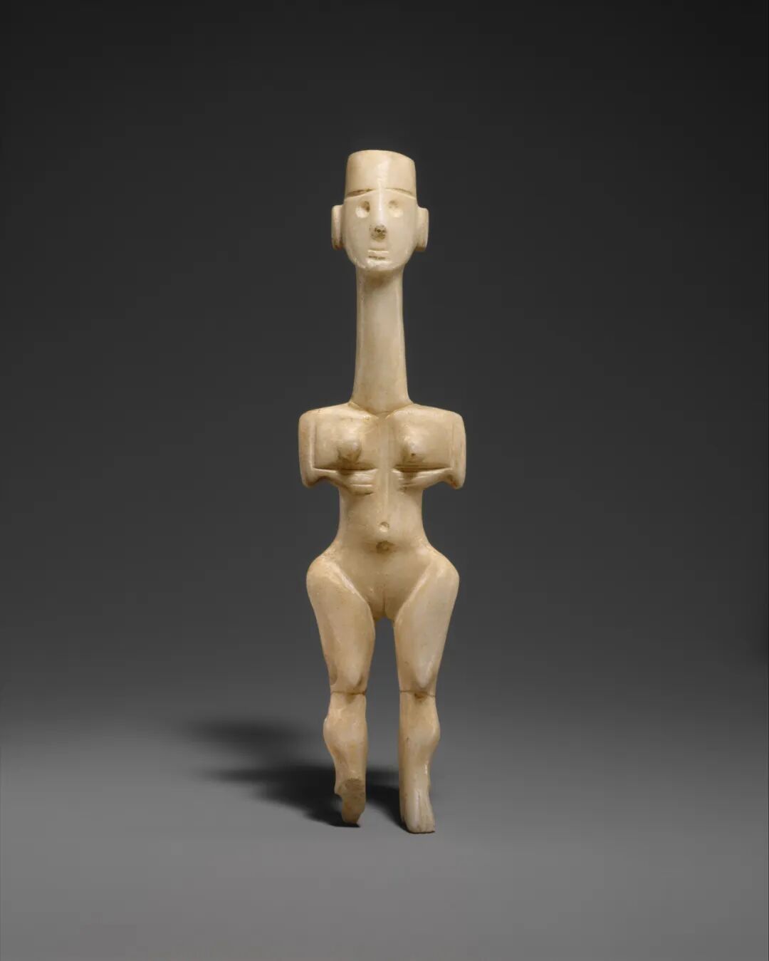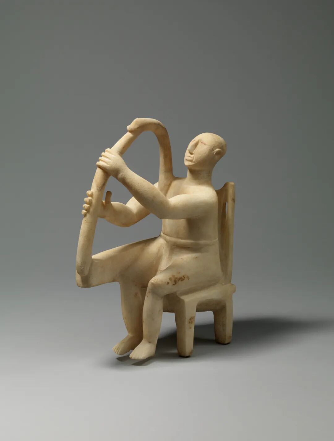 基克拉迪文化属于希腊青铜时代文化(公元前3200—前1100年),在青铜时代的早期,爱琴海中部的基克拉迪群岛形成了基克拉迪文明,其特征之一就是大理石雕像系列,这些雕像的共同特点是有着七弦竖琴型的头部,但是没有眼睛、耳朵和嘴,较长的鼻子呈半圆锥体形。身体没有太多细节,只有一些凹刻的线条可以区分双臂、双腿、脊椎等部位。这些高度抽象的人像令人着迷。