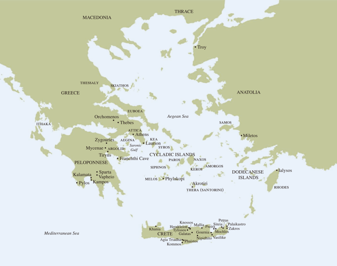 希腊由大大小小的若干岛屿组成,位于爱琴海中心的基克拉迪群岛以出产与人类肤色相近的大理石而闻名。这些群岛在一起组成了接近于圆的形状,也是古希腊传说中,为了太阳神阿波罗的出世而形成的圆形保护圈。