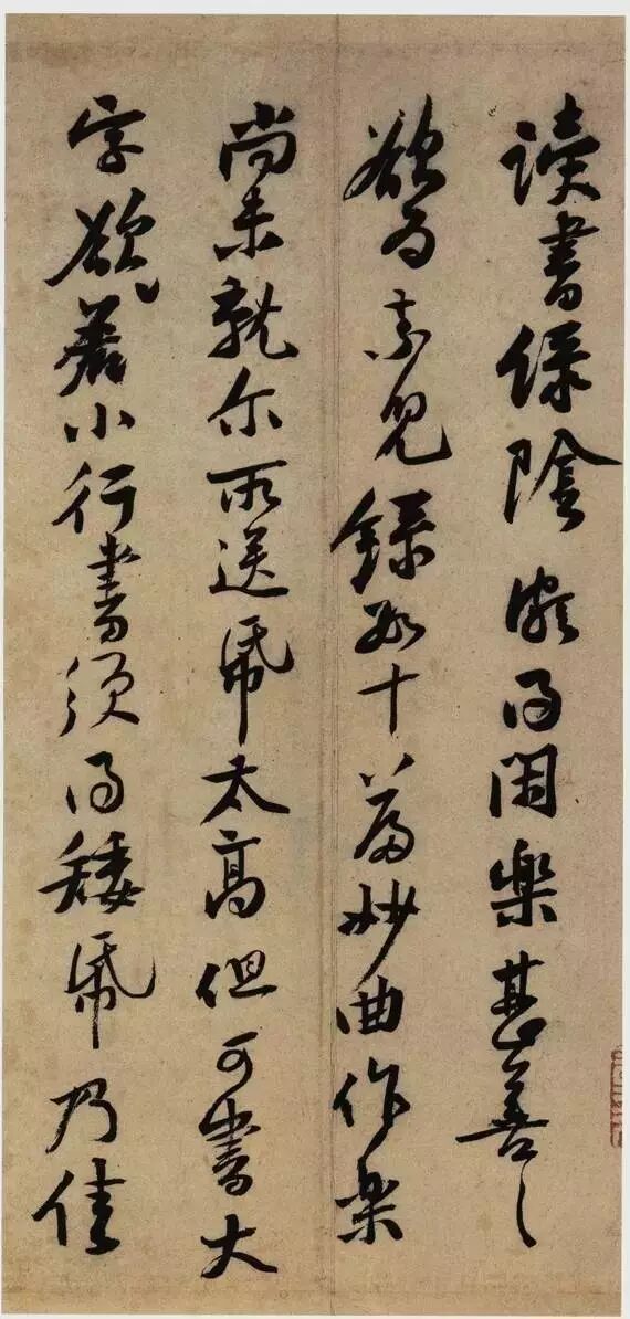 黄庭坚擅长行书、草书,楷书也自成一家。学书尤为推崇王羲之《兰亭序》。其有一首赞颂杨凝式的诗可以说明他对《兰亭序》习练体会之深:“世人尽学兰亭面,欲换凡骨无金丹。谁知洛阳杨风子,下笔便到乌丝栏。”这其中不能没有其对王羲之书法学习的深悟。