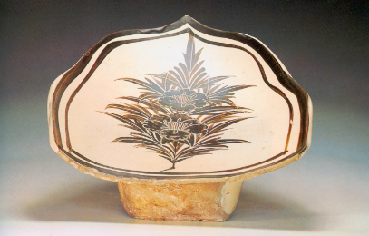类叶如意形瓷枕:还有一种枕面的曲线造型接近叶形或桃形,又与如意形有相似之处,故它造型灵动多变,线条流畅优美,如天上自在飘动的云朵,给人飘逸洒脱、典雅大气之感,被称为类叶如意形