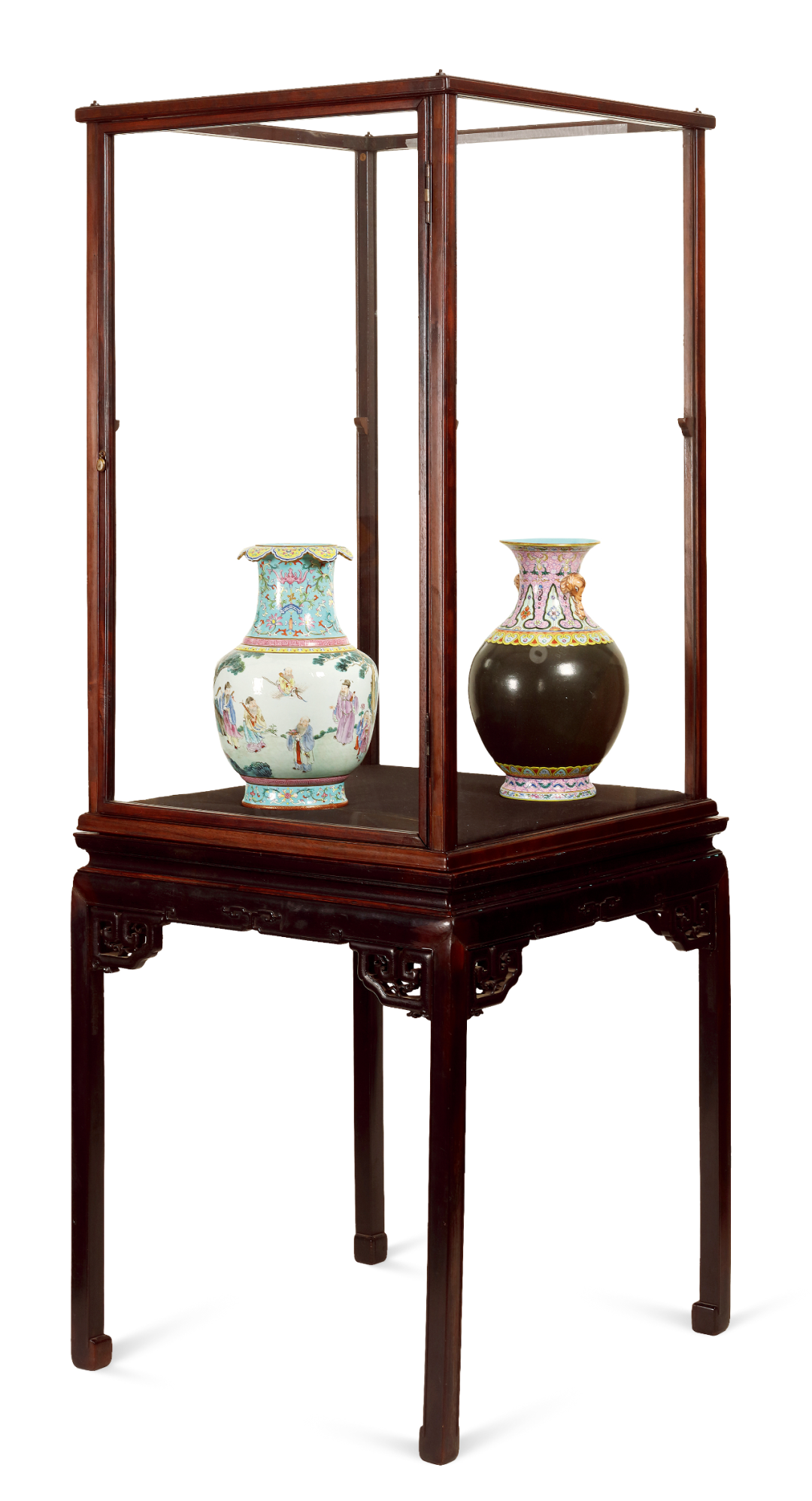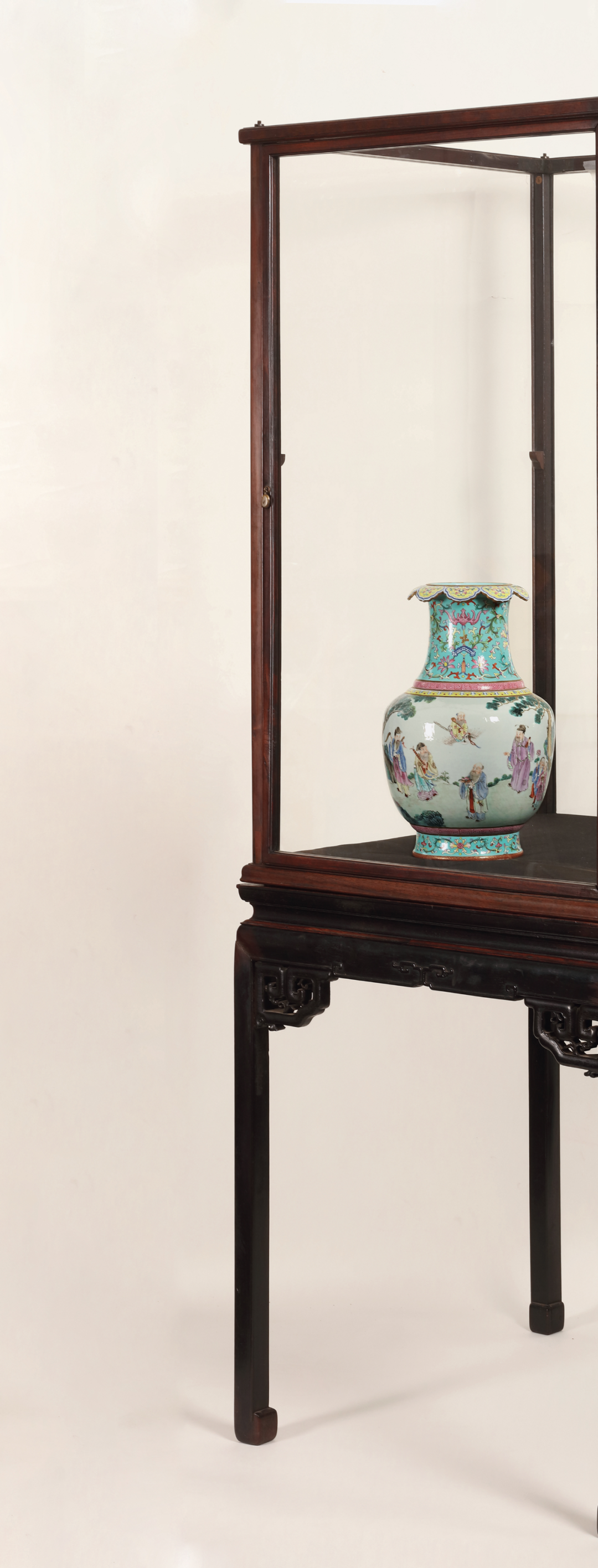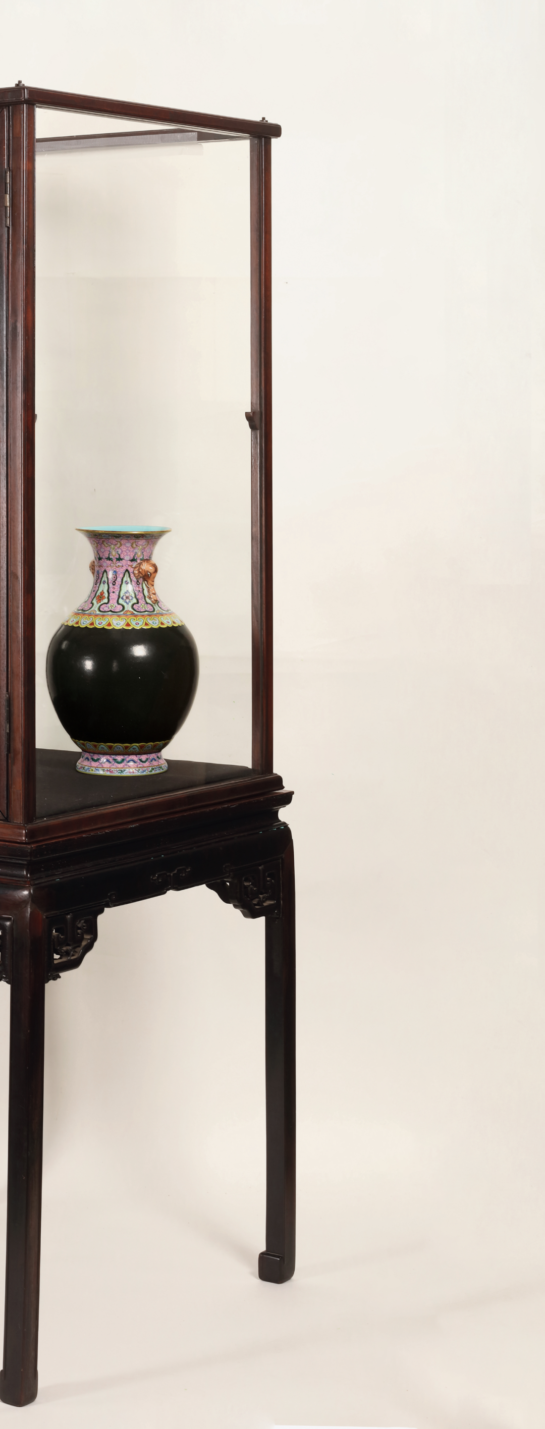 乾隆时期国力昌盛,乾隆本人擅书会画,醉心鉴赏书画古物,热衷发展文化大业。其时烧制之瓷器不惜工本,以奢华著称,更兼有西洋装饰元素,中西合璧,海纳百川,技术之高超,亦是空前绝后,堪称中国彩瓷之巅峰时代。本器以传统单色釉,结合洋彩,融汇中国传统与西洋艺术之精粹,为清朝风尚之代表佳器。