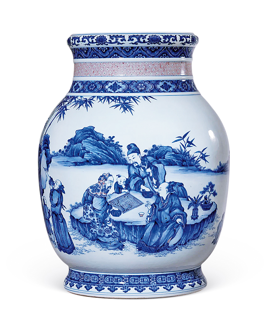 清乾隆 青花釉里红「琴棋书画诗酒茶」人物大尊