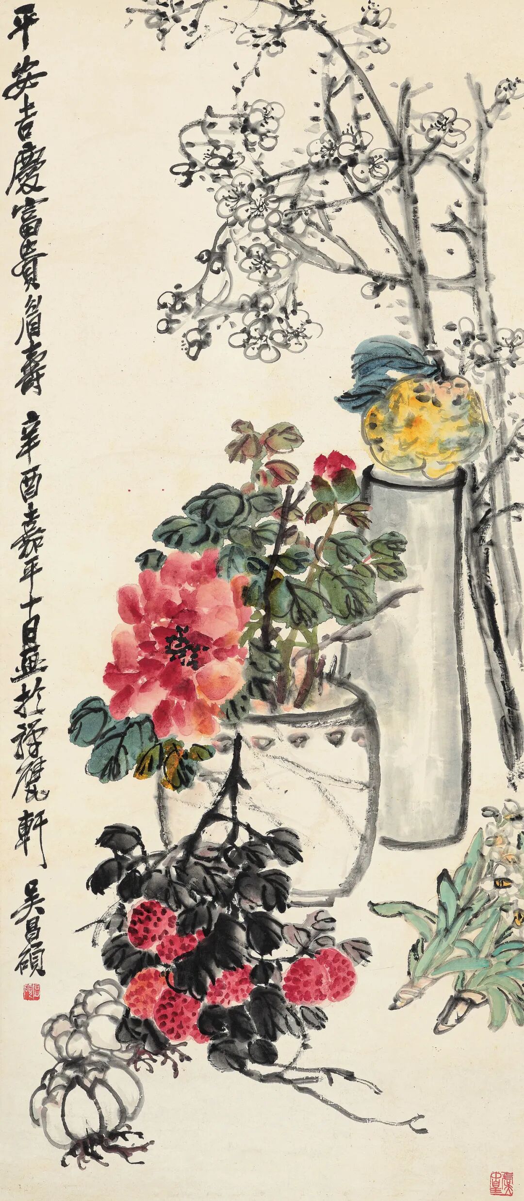 【说明】黄大卫医生旧藏。黄大卫为香港著名外科医生,于1950年代为香港工会联合会工人医疗所创办人之一。黄医生嗜好书画,于上世纪60年代至70年代在香港集古斋购买心仪作品,尤好齐白石、黄宾虹、吴昌硕及傅抱石等近代名家之作品。