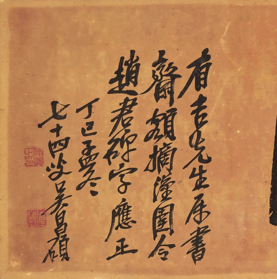 1.上款“梧园”先生为朱心佛(1890-1961),原名羲胄,别号悟园,湖北潜江张港镇人。京师大学堂国文系毕业,师从章太炎与林纾。曾与国画艺术大师齐白石同居京华寺,相互切磋学问,习字作画。编订林纾作品多种,著有《悟园诗存》等。