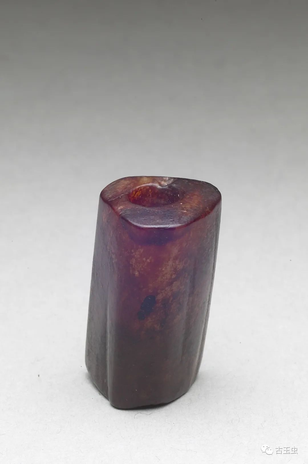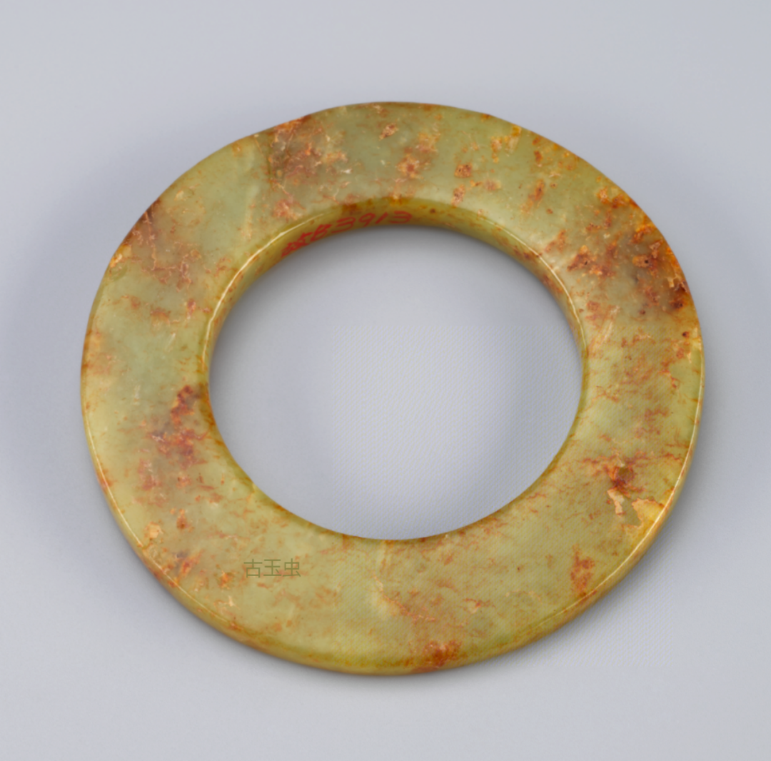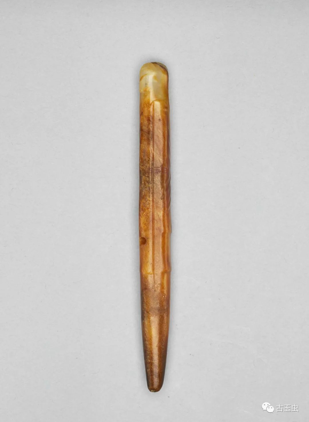 古玉深埋地下,受到周围环境的影响,表面结构水逸失,天长地久,生“熟”的视觉效果。