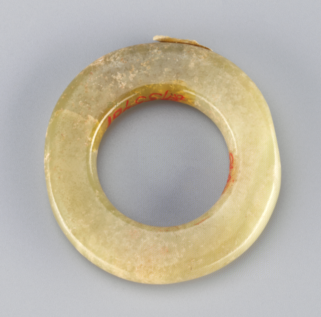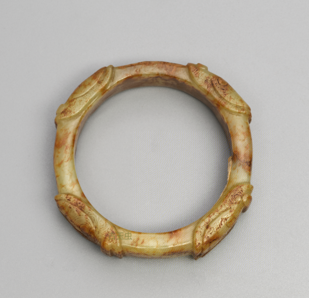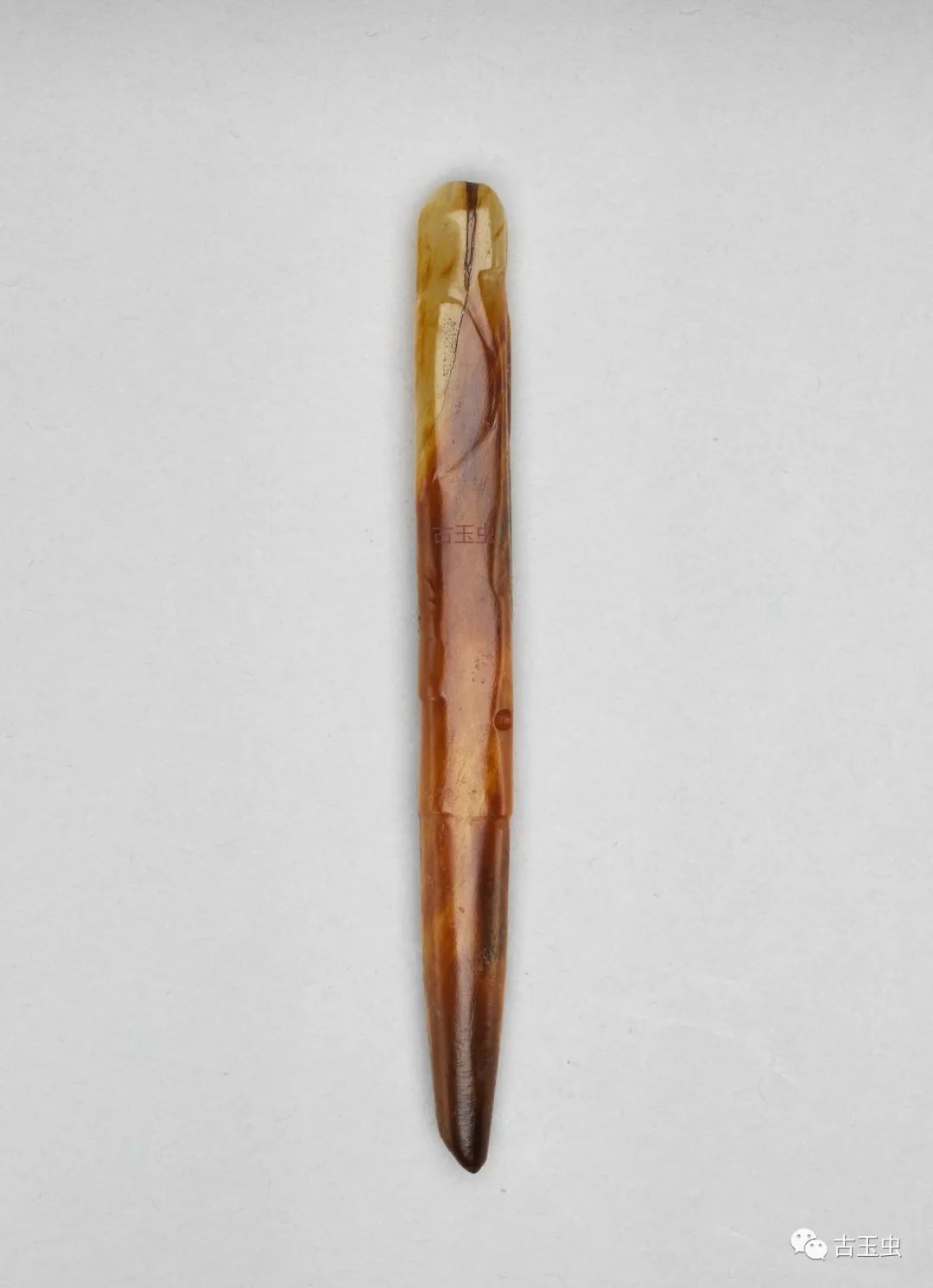 古玉深埋地下,受到周围环境的影响,表面结构水逸失,天长地久,生“熟”的视觉效果。