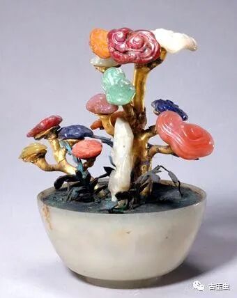 清 红白玛瑙蝙蝠桃树花插 北京故宫博物院馆藏