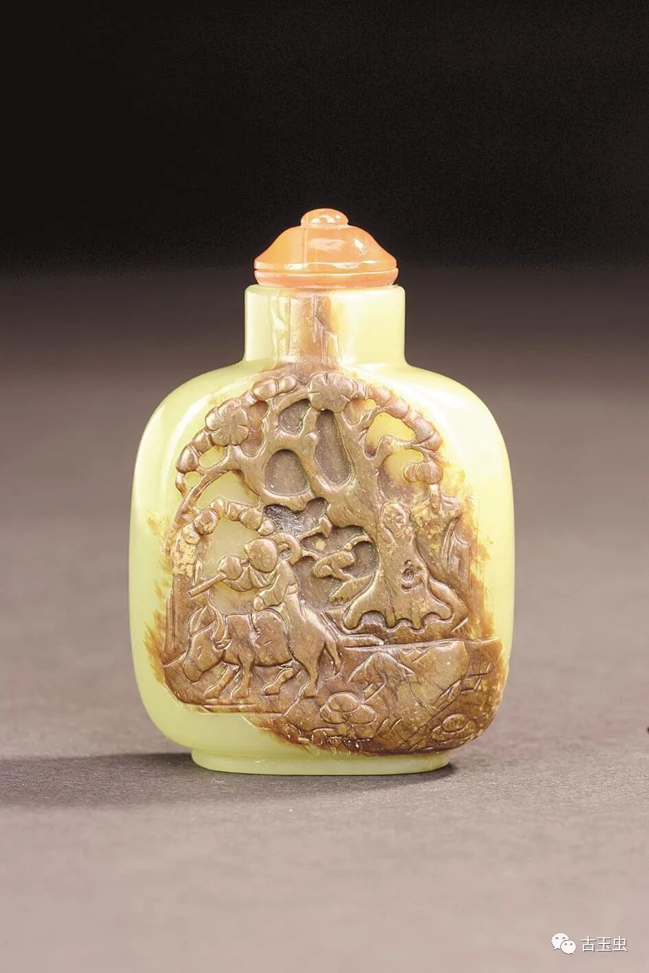 清 巧雕俏色人物图玛瑙鼻烟壶(正面) 美国大都会博物馆藏