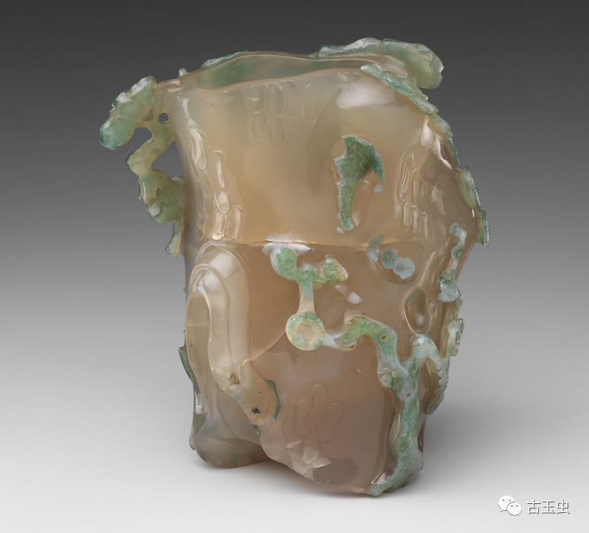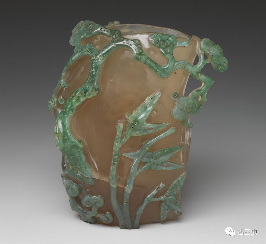 清 玛瑙巧雕俏色松竹梅花插(背面) 美国大都会博物馆藏