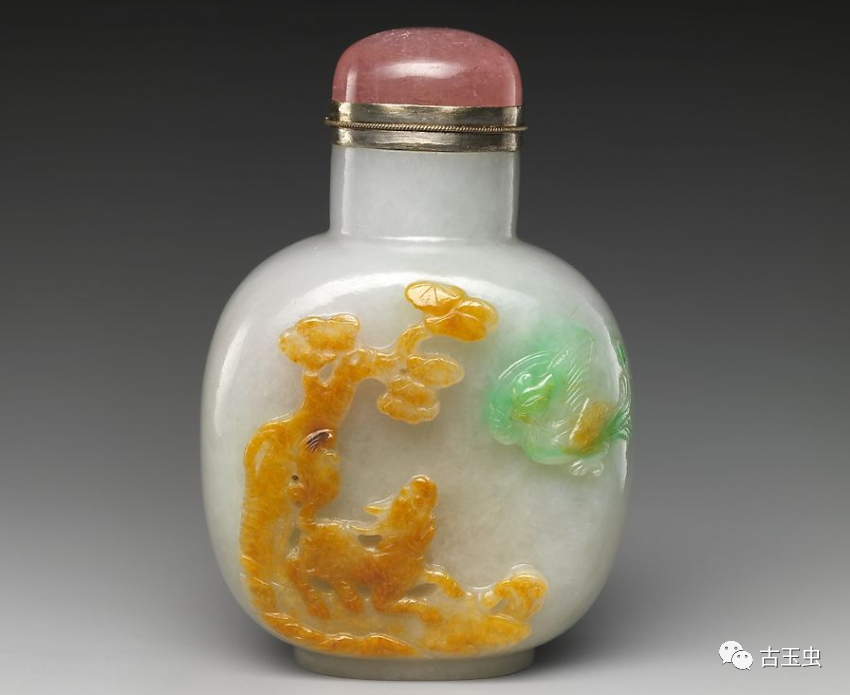 清乾隆 玛瑙俏色巧雕蛐蛐纹鼻烟壶 美国大都会博物馆藏