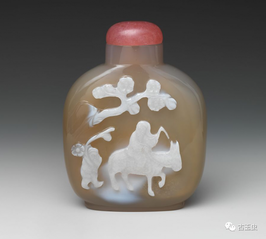 清 巧雕俏色人物图玛瑙鼻烟壶(背面) 美国大都会博物馆藏