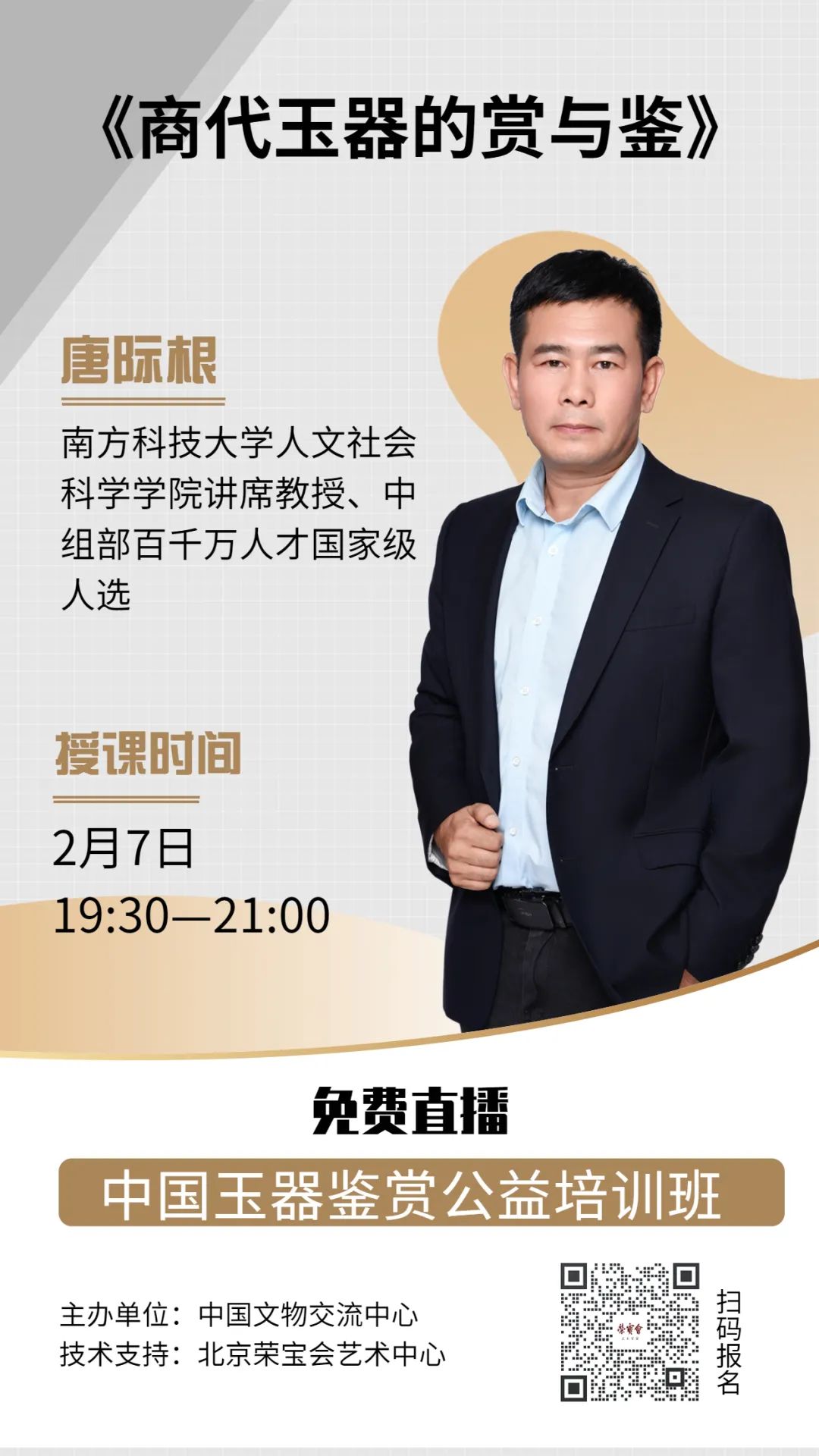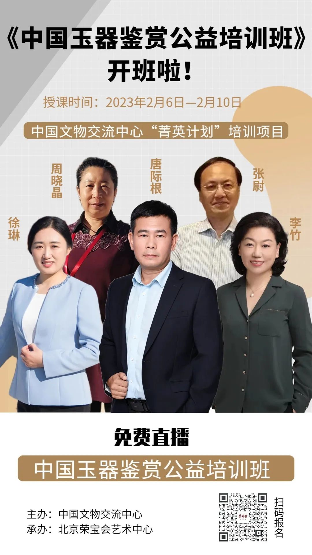 由中国文物交流中心主办的文物交流“菁英计划”三年培训项目,目前已经成功举办两期(书画鉴赏公益培训班和陶瓷鉴赏公益培训班),累计观看人数突破5万人,并收获了40余万次点赞,赢得了学员们的一致好评和良好口碑。2023年2月6日—2月10日,“菁英计划”第三期公益培训项目即将拉开帷幕,开展“中国玉器鉴赏公益培训班”线上直播课,邀请到五位国内顶尖玉器研究鉴赏专家:南方科技大学人文社会科学学院讲席教授、中组部百千万人才国家级人选唐际根;中国文物学会玉器专业委员会会长、故宫博物院研究馆员徐琳;南京博物院研究馆员、现任文物征集部主任、国家文物进出境审核江苏管理处处长李竹;上海博物馆研究员、上海市文物鉴定委员会委员张尉;辽宁省博物馆研究员、辽宁省文物保护专家组成员周晓晶,围绕中国古代玉器鉴赏开展线上培训,欢迎全国文博单位从业人员及玉器爱好者免费报名参加!