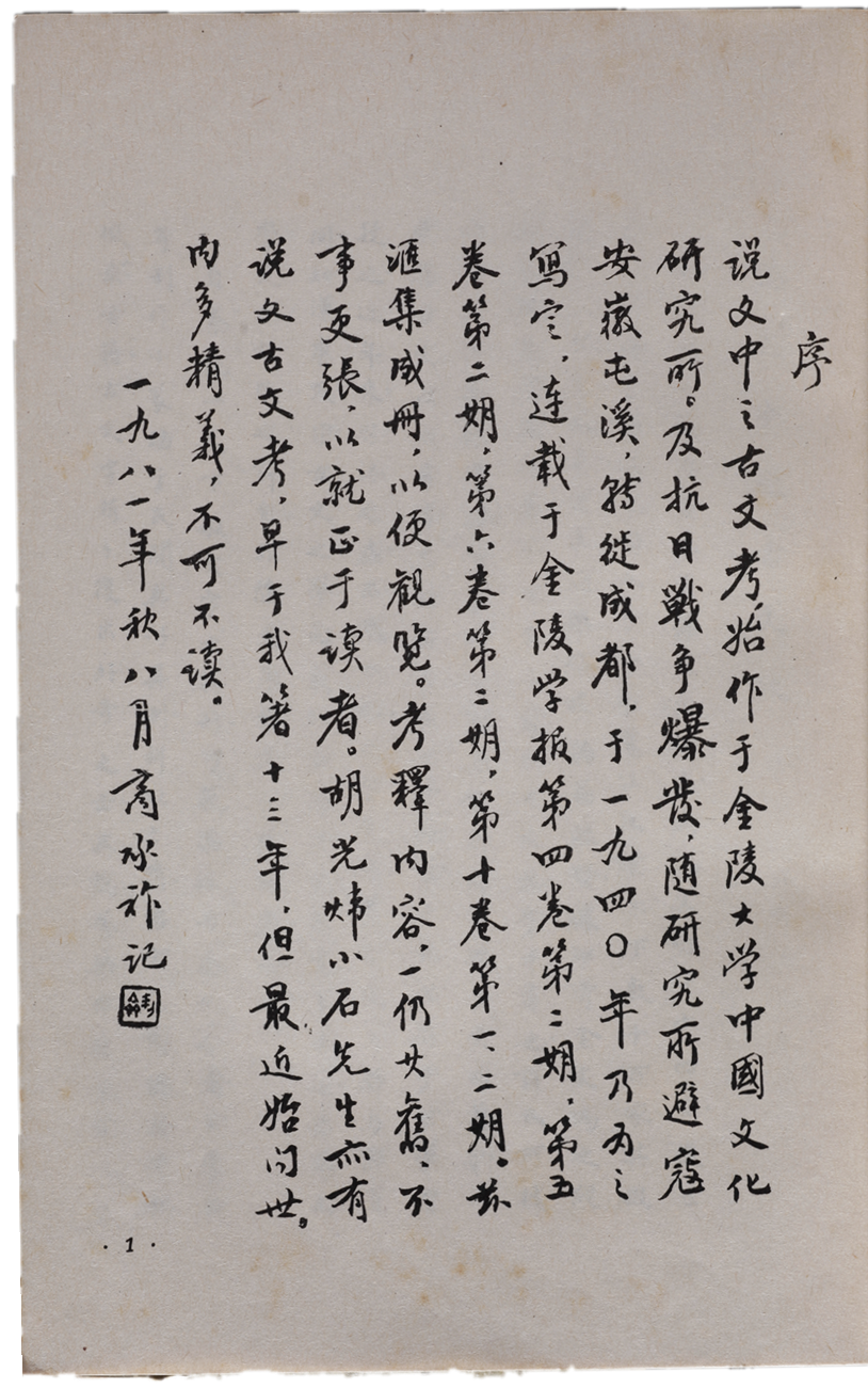 商承祚1934年着手作《说文中之古文考》,1940年完成。此为1983年上海古籍出版社再版。