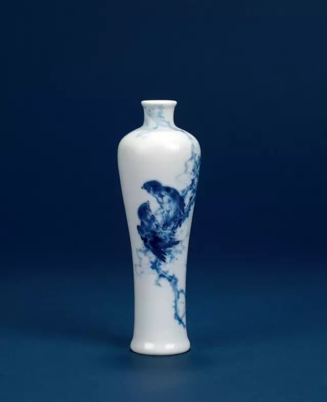 王步 青花 双雀图梅瓶