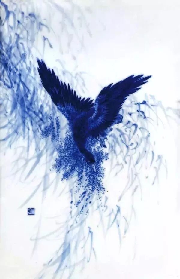 回观历史,青花多以山水、人物、鸟兽、花卉、瑞图为题。但青花虽美,也有其天然的缺陷,那就是色彩单一。青花瓷,若想具备意像上的“盛开”,必须首先具备视觉上的“多层”。唯此,方能展现其独特的意境。而要想达到这一意境,必须依靠“分水”之技。