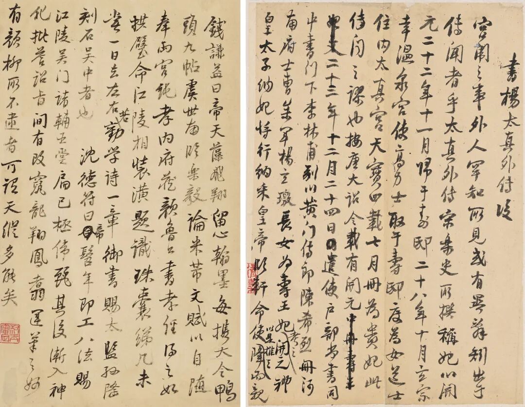 有为学立言的重要文稿,如张廷济清仪阁旧藏朱彝尊名篇《书杨太真外传后》初稿,杨太真即杨贵妃,关于太真入宫始末,为唐史中一重要公案,自来考证之文颇多。清代朱彝尊、杭世骏、章学诚均撰文论及,而以朱氏之文为最有根据。盖朱彝尊得见当时不甚习见的材料,如开元礼及唐大诏令集诸书,而杭世骏及章学诚不过是承朱彝尊之说,推衍发挥而已。此文著录于《曝书亭集》卷五十五,此初稿多增删涂乙,与刻本相较,颇有异同,应是文章定稿前的初稿,从中可以看出作者的构思成文的过程,也避免了传抄、刊刻所带来的一些错误,这是初稿本的珍贵价值所在。