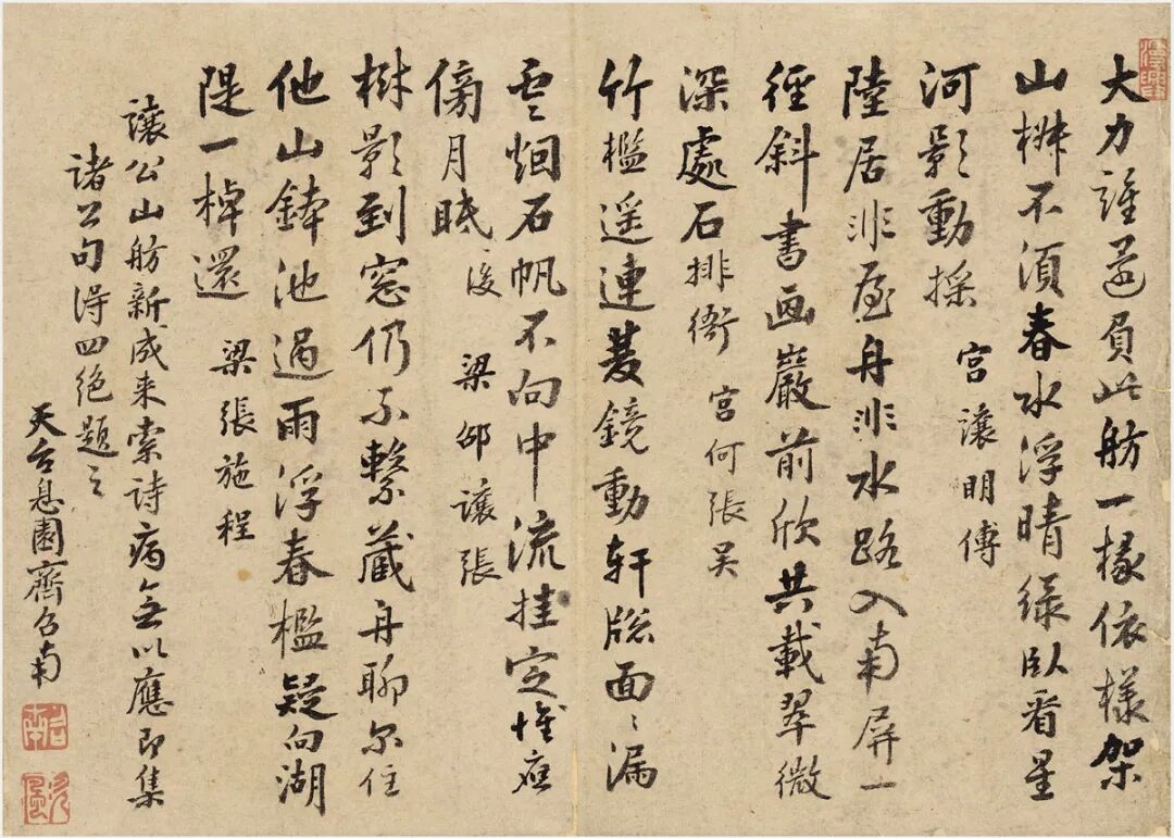 此为清嘉善奚大绶所作七言诗稿十首,以追念掌上明珠。上附张廷济墨笔跋文,张氏与其有同窗之谊,曾为其作《感逝诗》收录于《桂馨堂集》之中,称其:“奇气收三楚,高文揽六朝”。惜才之情溢于言表。另此札亦是张廷济辑藏乡邦文献之展示。