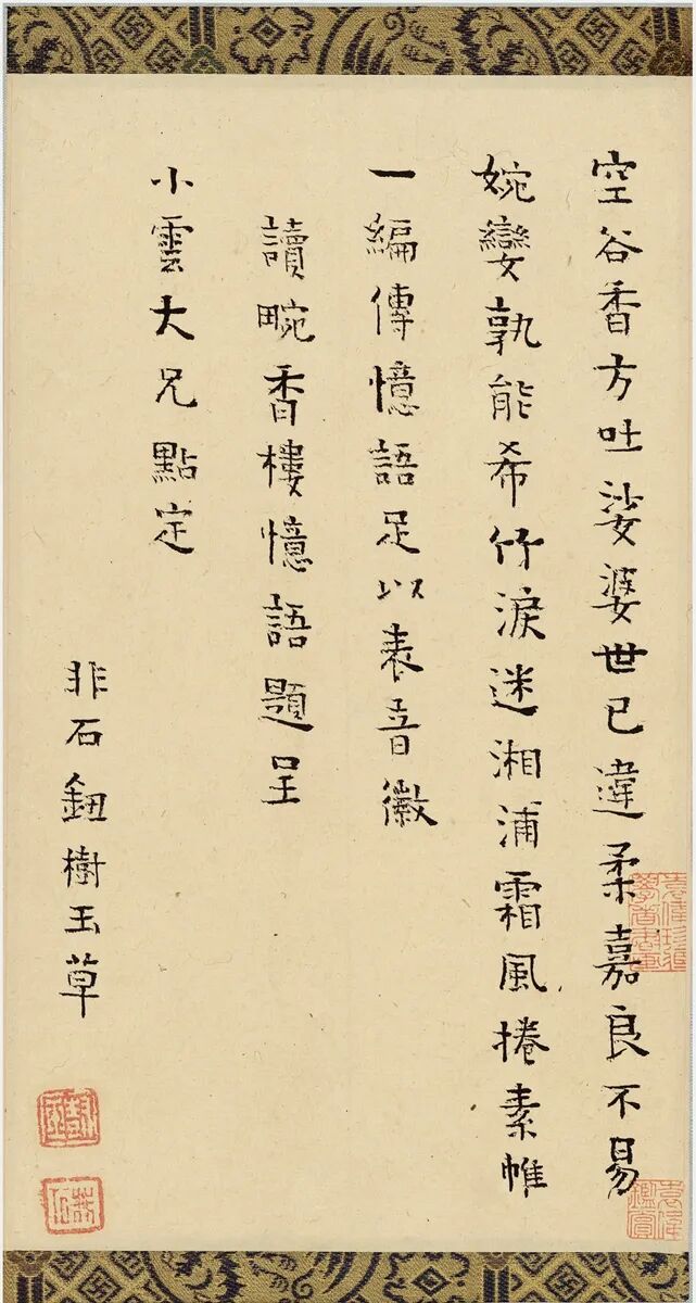 钮树玉(1760~1827)为陈裴之作《香畹楼忆语》题诗