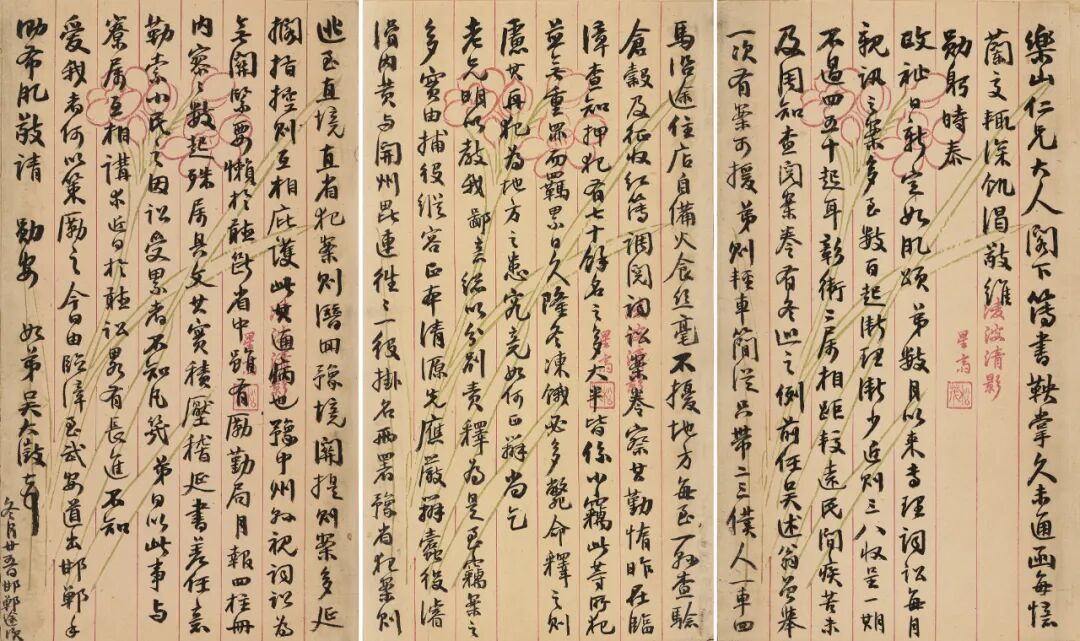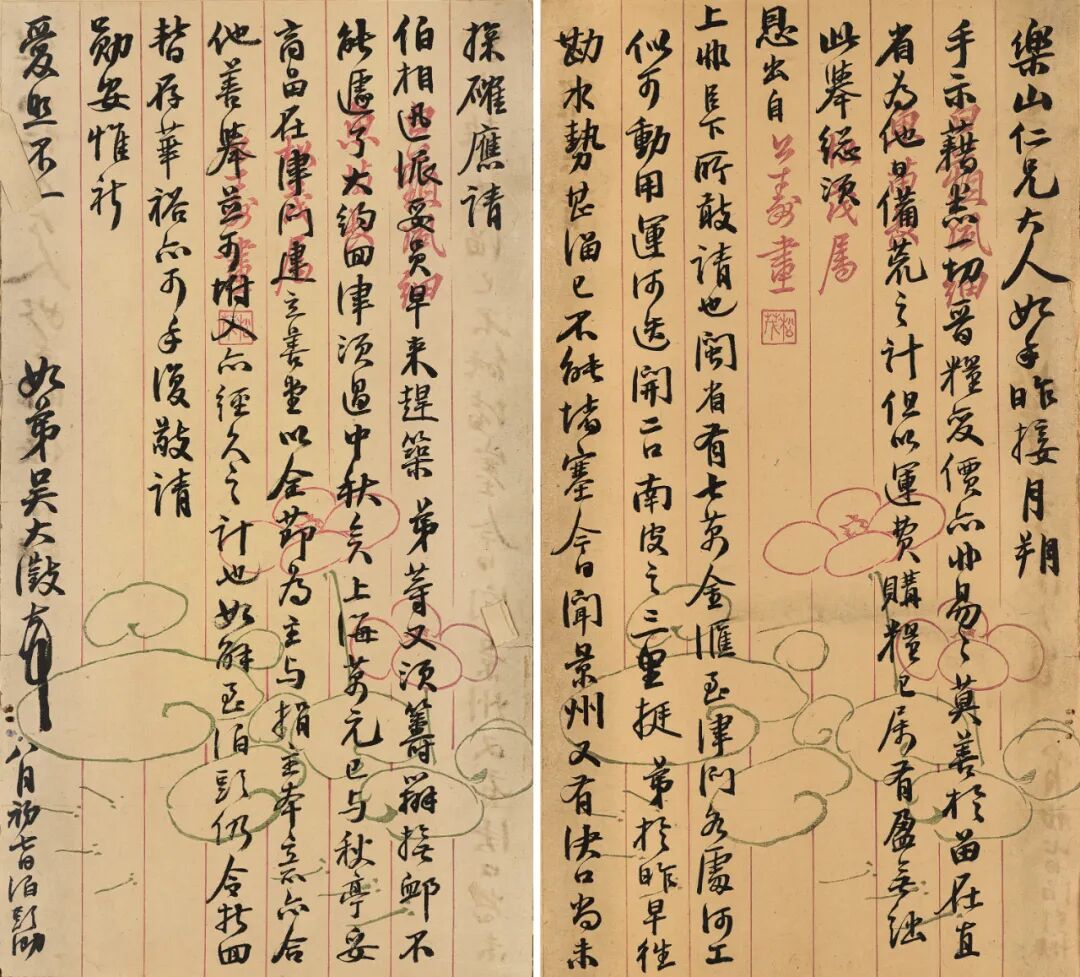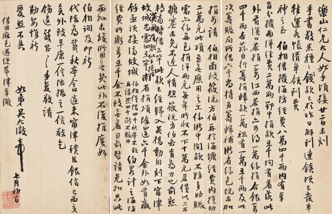 这一年吴大澂43岁,任翰林院编修之职,因历年助办直省赈务得力,得李鸿章赏识。在其68岁的人生之中,谈不上鲜衣怒马,也当是春风得意的年纪;丁寿昌60岁,曾随李鸿章镇压太平军、捻军屡立战功,又有同乡之情。丁忧前任天津道,服阙后返津复职。九月初三日这一天,直督李鸿章的一封奏调,让一文一武的二人在其后的数年间因公务往来,书函频繁:查有翰林院编修吴大澂,才识闳通,心存利济,条理亦复精详,历年助办直省赈务,躬亲琐屑,不惮烦劳,今因晋省灾重,在京竭诚劝捐,闻已集有巨款,其实心好善肫恳爱民,在儒臣中尤不易得。拟请敕下翰林院,即令该编修刻日来津,会同丁寿昌、黎兆棠等筹办一切,必于灾区裨益匪浅。奏调中,李鸿章称吴大澂“才识闳通”“心存利济”“条理精详”“躬亲琐屑”,这些观点显然和正史中最后的定论背道而驰,于是我们试图去梳理信札中所涉此次赈灾的部分内容,选录于下:昨早,弟舟过南馆陶镇(乡民谓县城为北馆陶),探明路径,距苏曹镇一百六十五里,惟近处雇车殊非易易,因思南馆陶设局转运较临清少一日之程,每石省钱五六百文,节省经费不少。弟现住道口镇山西会馆,先将各船所载之粮逐一过秤,其有偷漏搀土之弊不能不加惩创,今日已枷号船户二名,皆有搀和灰土情迹,殊可痛恨。凤台现在陆续添设六七处,救活饥民不少,惟阳城卢小鹿办事迟缓,弟屡催其添设数处,早设一厂,早活饥民一日之命,如阳城能设十厂,实与饥黎大有裨益也。伯相片稿已见阁钞,引见一节似可从缓,鄙意不欲燥进,虚名盛而实济少,必为造物所忌,惟有杜门思过,稍自敛藏而已。伯相厚意永矢勿谖,他日力图报称,迟早有数,不在一时,未知尊意以为然否?信札初始,吴大澂自山东赶赴山西,一路途径山东临清、冠县、馆陶诸地,沿途观察地形,并结合水道,总结出利用卫河河运经馆陶、大名至河南入山西的运粮路径;同时对沿路河运船只进行检验监督,对偷漏掺土之弊严惩不贷;至山西灾区重地,又感百姓之疾苦,尽可能优化布局,增增设粥厂;遇有雨透之时,积极筹划补种禾谷,祈求来年丰收。种种形状,可以看出吴大澂此行不仅在筹措资金上出力不少,更于车马计算、粮食监管、粥厂布置等赈灾细枝末节躬行践履。字里行间,皆是百姓,正如信中所言,对虚名“不欲燥进”。针对贫民卖衣鬻物者,吴大澂提出在市集广收旧衣,稍宽其值,既能救急,又可以作为冬季捐备棉衣之用。