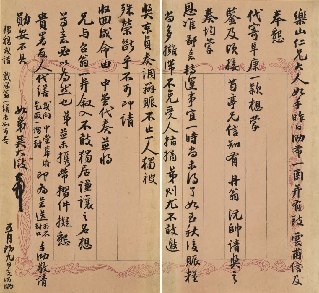 也正是这诸多得力之举,使得文官出生的吴大澂在清末乱世之中屡屡被赴安内攘外之职:清光绪六年(1880)赴吉林督办防务、清光绪十二年(1886)任中国首席代表同俄国勘界会谈、清光绪十四年(1888)赴河南接办黄河堵口…直至光绪二十一年(1895)兵败,高龄(六十一岁)的他才停止了四处奔波的岁月。同年四月,其夫人陆氏因肝疾溘然离世;二十四年(1898)降旨革职,永不叙用;二十八年(1902),时年六十八岁的吴大澂终积忧成疾,生命永远定格在了那刻江南湿冷的寒冬之中…此后,伴随着慈禧太后的驾崩,清宣统元年(1909)十月,经两江总督端方请求,翁同龢被清廷开复原官,追謚“文恭”。而吴大澂却终究没能等来属于他的那一句“廉颇老矣,尚能饭否?”然而历史,并没有忘记这位老人,当封建统治被推翻,时代翻开新篇之际,吴大澂这个名字并未同其他许多籍籍之辈般就此湮没,却似深埋已久的避讳字和禁书一般,赫然重归众人探究的视野。作为同乡的中国近代历史学家顾颉刚这样评价道:“有是哉,毁誉之不足以定是非也!自甲午一役之后,谁不以卤莽咎先生者;咎之不已,更诮之曰浮夸:讹言朋与,前后相继,耳食者遂信为实然…先生一生,未尝以一己之荣华而忽生民之涂炭,又未尝以外人之逼迫而隳国家之尊严,其谋国之忠,任事之勇,实迥非常人所可及。”是的,历史的“真”与“伪”是在寻找辩正中求得答案的,百年之后的今天,当我们站在新时代的高度回望过去,希冀通过此份信札中的一些蛛丝马迹,和大家共同去感受这位中国旧式文人金石收藏以外的拳拳之心…中国书画古代作品暨明清信札手迹专场