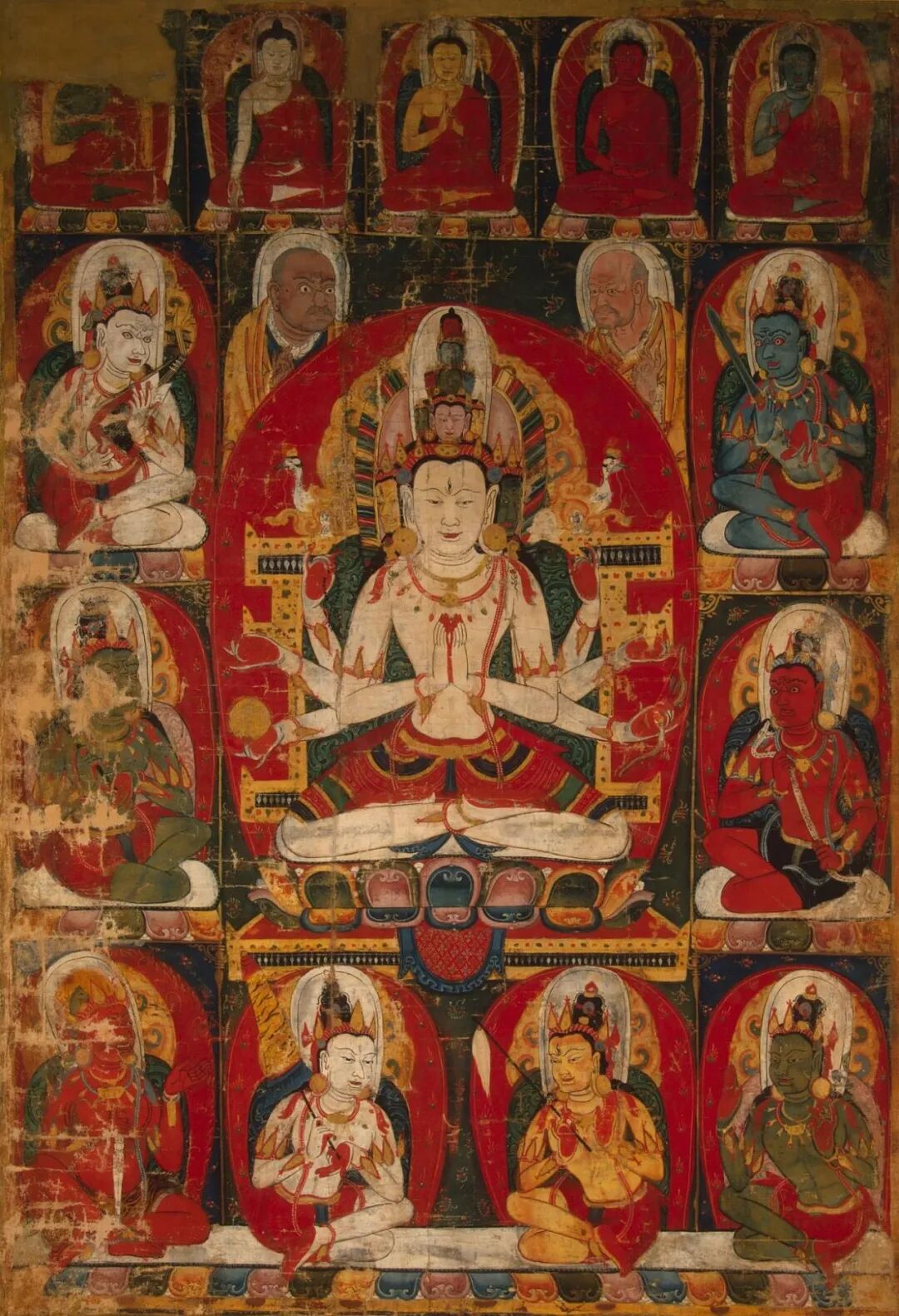 西夏佛教绘画中,汉传佛教与藏传佛教两个系统、汉地绘画传统与吐蕃绘画传统两种风格并存,反映出西夏佛教已进入兼收并蓄、多来源、多层次的成熟时期,这一时期为西夏历史的中后期,大约从公元12世纪下半叶至13世纪上半叶。![]()