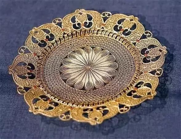又叫细金工艺,是一门传承久远的传统手工技艺,主要用于皇家饰品的制作。为“花丝”和“镶嵌”两种制作技艺的结合。