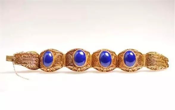 20世纪花丝银鎏金镶嵌天然上品青金石手镯