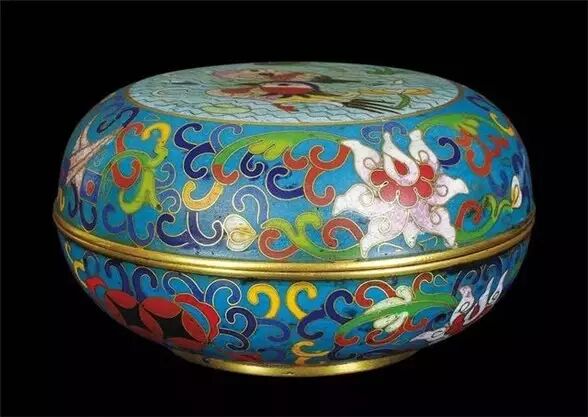 清代铜胎掐丝珐琅开光莲池鸳鸯印泥盒