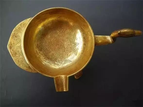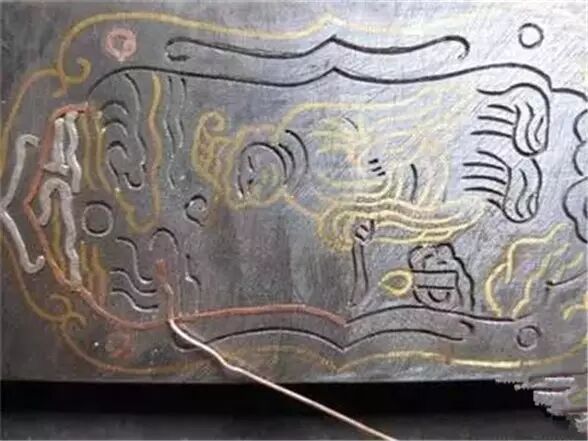 2、錾槽。铜器铸成后,凹槽还需要加工錾凿,精细的纹饰,需在器表用墨笔绘成纹样,然后根据纹样,錾刻浅槽,这在古代叫刻镂,也叫镂金。