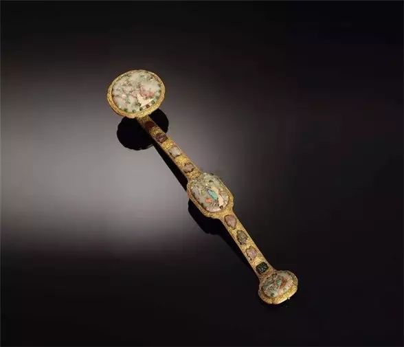 清乾隆铜鎏金錾花百宝嵌八宝三多如意