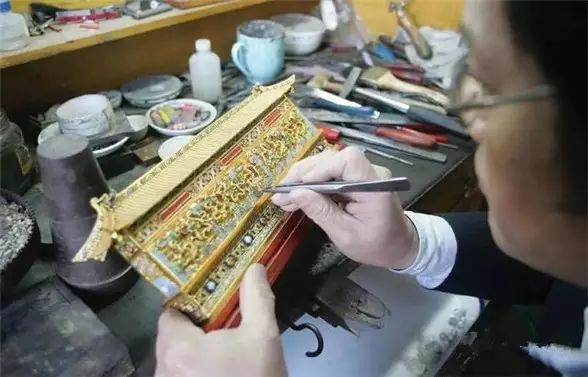 掐丝工艺,技艺巧妙,全凭操作者的一双巧手和纯熟的技艺,掐饰出妙趣横生、神韵生动的画面,但这绝非易事。
