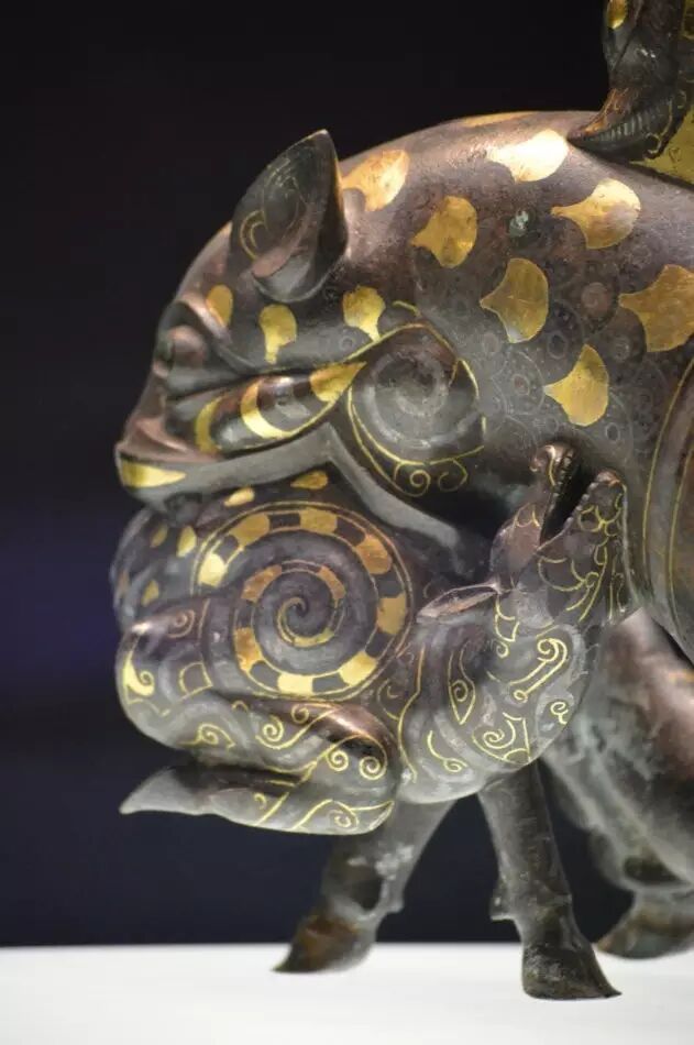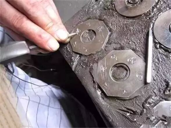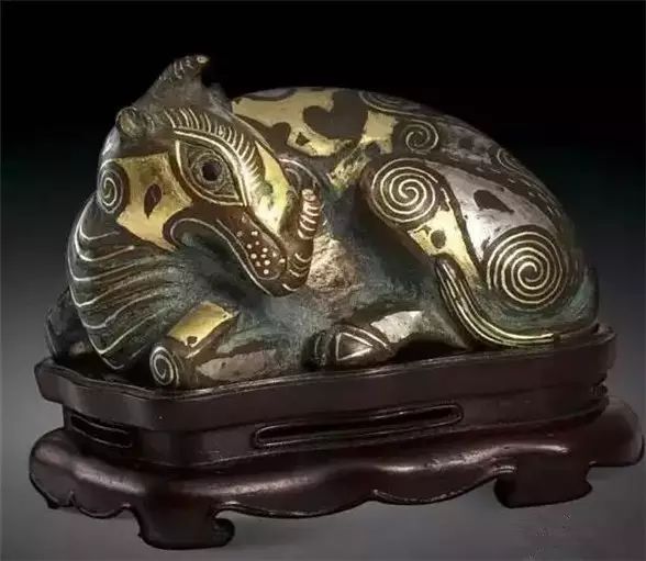 4、磨错。金丝或金片镶嵌完毕,铜器的表面并不平整,必须用错(厝)石磨错,使金丝或金片与铜器表面自然平滑,达到严丝合缝的地步。
