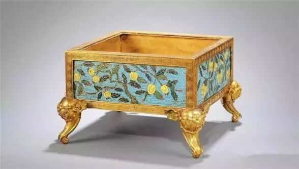 清乾隆铜鎏金象耳足嵌明代掐丝珐琅方炉