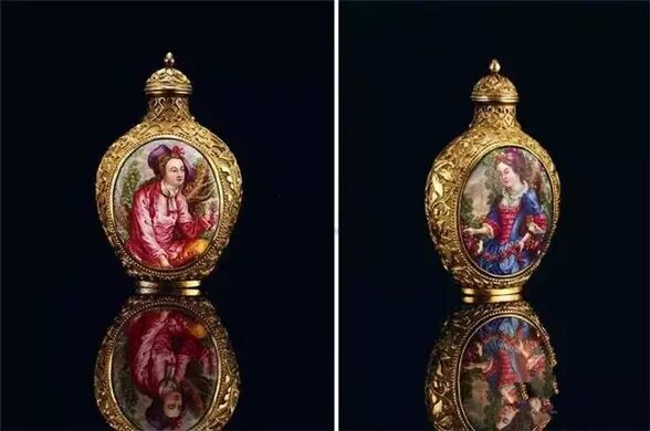 清乾隆铜金錾花嵌画珐琅西洋人物烟壶