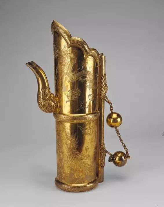 五成金錾花执壶,清,高30.8cm,宽27cm.