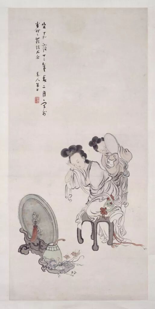 国博藏明代《千秋绝艳图卷》之《薛姬临镜写真图》