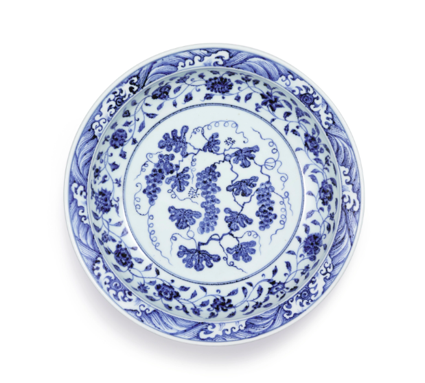 明永乐 青花葡萄纹折沿盘 佳士得2018年拍品