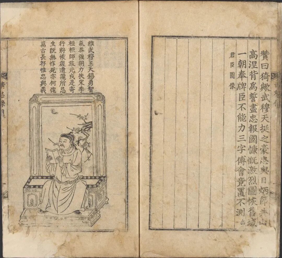 武穆家谢昭雪表云:“青编尘乙夜之观,白简悟壬人之谮。”最工。武穆有《满江红》词云:“怒髪冲冠,凭栏处,潇潇雨歇。抬望眼,仰天长啸,壮怀激烈。三十功名尘与土,八千里路云和月。莫等闲白了少年头,空悲切!靖康耻,犹未雪;臣子恨,何时灭?驾长车踏破,贺兰山缺。壮志饥餐雠恨(应为‘胡虏’,乃出自清人篡改)肉,笑谈渇饮匈奴血。待从头收拾旧山河,朝天阙。”