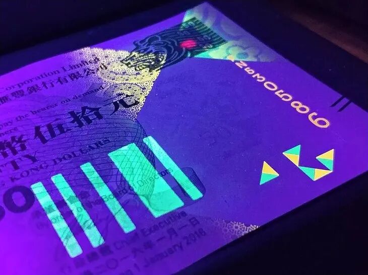 ↑紫光灯下,元宵钞的精美图像