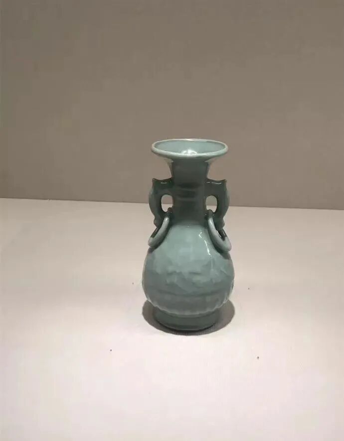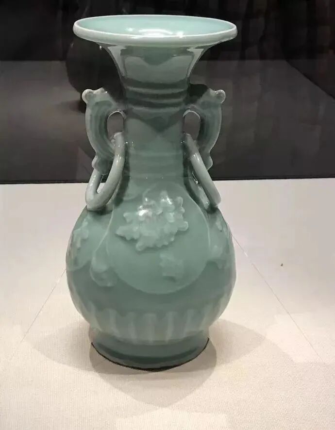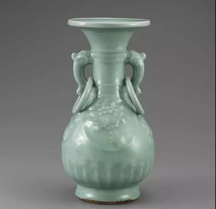 南宋 龙泉窑青瓷浮雕牡丹纹双耳瓶
