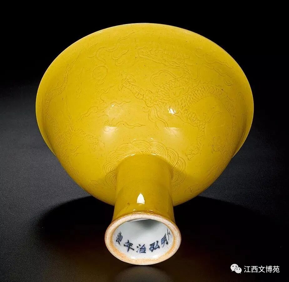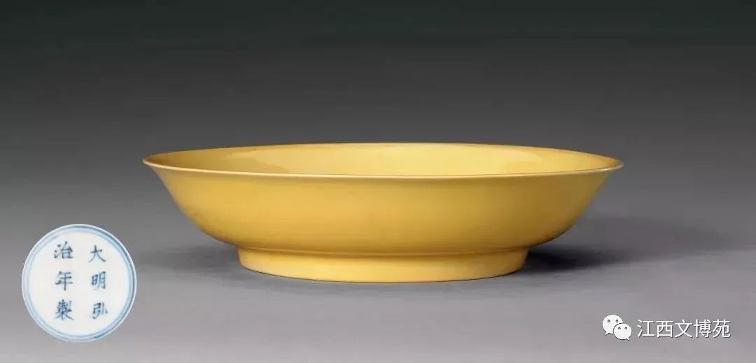 黄釉瓷创烧于明初景德镇官窑,以弘治朝的最为著名,其精美非凡,不可多得。论之发色前朝后世皆不及,是历史上低温黄釉的最高水准器,因其娇嫩、艳丽、隽秀、精巧、小可、迎人的诱人风格令人爱不释手。