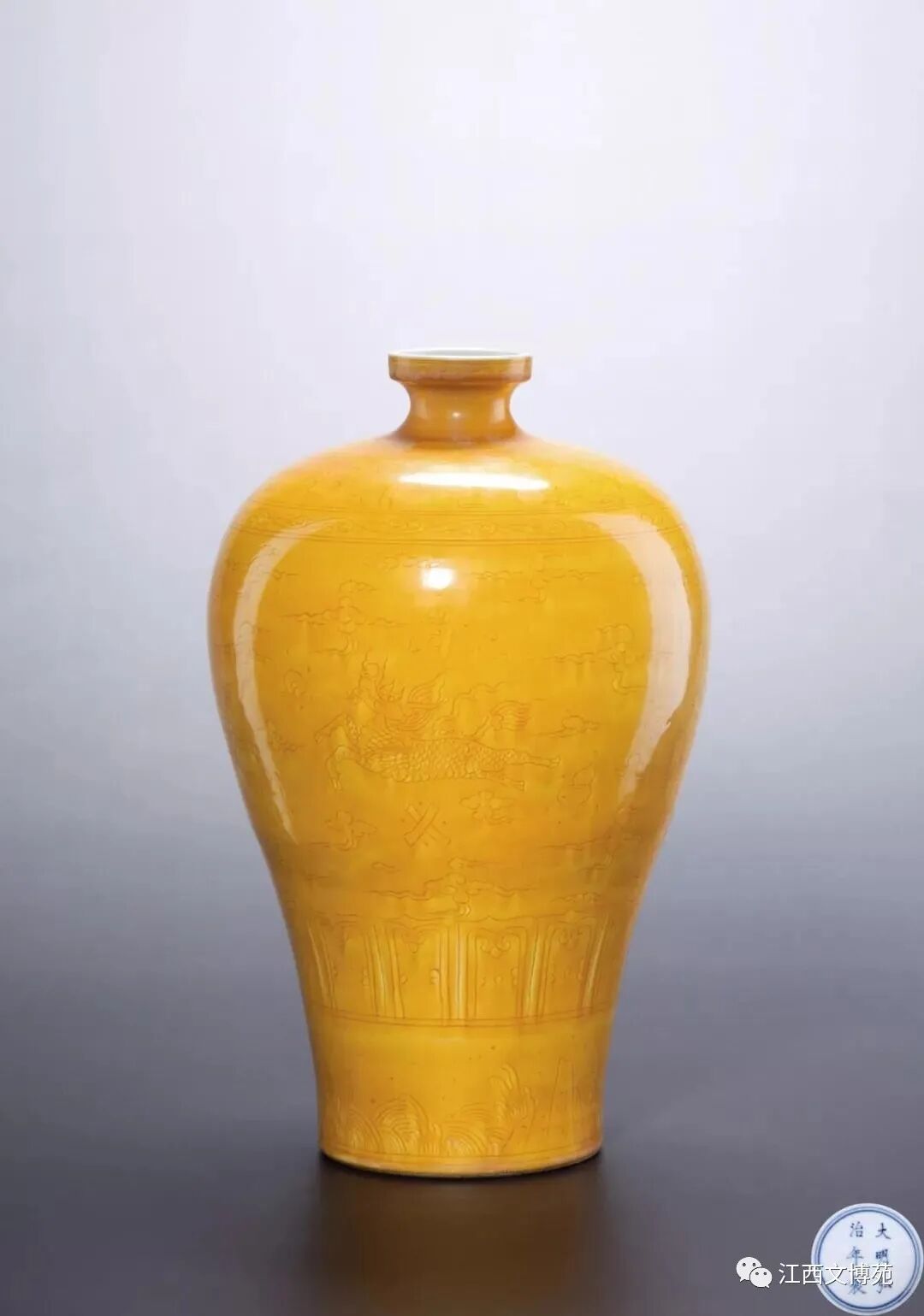 明弘治 黄地刻花云龙八宝纹梅瓶