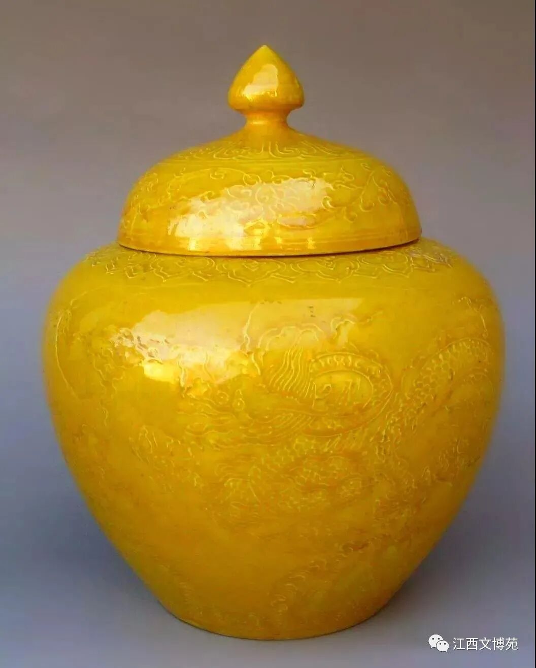 明弘治 娇黄釉堆花云龙纹盖罐