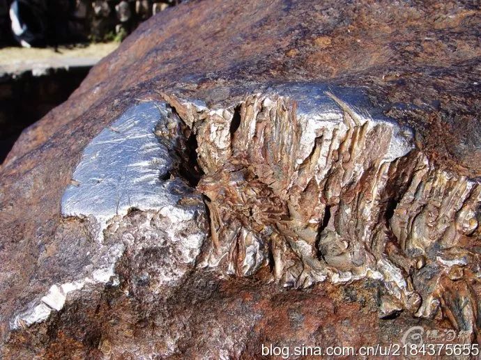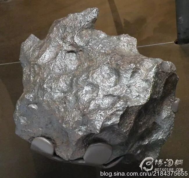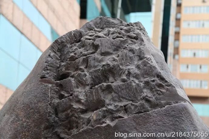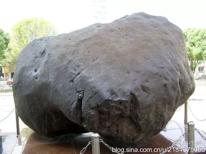 新疆世界第四大铁陨石--新疆铁陨石,1989年发现于新疆准葛尔盆地东北边缘(N47°E88 )。按重量居世界第四位,我国第一位。外形呈双峰骆驼体状,最大长度2.42m,最大宽度1.85m,最大高度1.37m,体积3.5m3,重约28吨。主要化学成分(%)=Fe88.11、Ni9.66、Co0.47。主要矿物为铁纹石约占90%,其次是镍纹石及细粒铁纹石和镍纹石的混合物合纹石,少量矿物为陨磷铁矿,菱磷铁镍矿,陨硫铁,铬铁矿,陨碳铁镍矿等。主要矿物组合具有典型的维氏台登构造、各种合纹石构造和纽曼线及各种陨磷铁矿包体。在镍纹石带和梳状合纹石区具有典型的阿格雷尔(Agrell)效应。