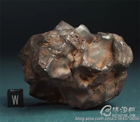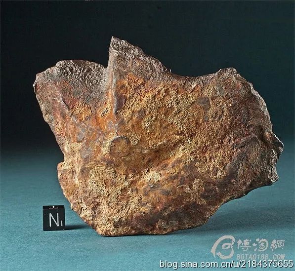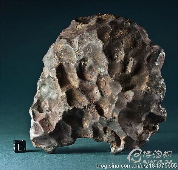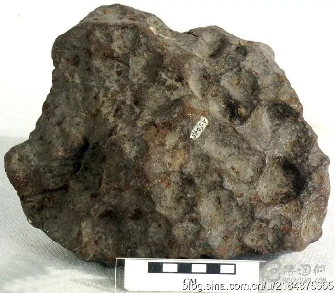 铁陨石(Iron meteorite)形态呈不规则致密块状,比重较大。新鲜面为深灰-灰黑色,风化后为褐灰色。表面普遍可见有大小不等的凹坑,最大者约3×4.5cm,深约1.5-2cm。凹坑形态多为椭圆状,部分为不规则状。陨石主要成分为铁质,含少量镍质。产地:新疆采集人:中国地质大学博物馆采集时间:1982年收藏单位:中国地质学博物馆