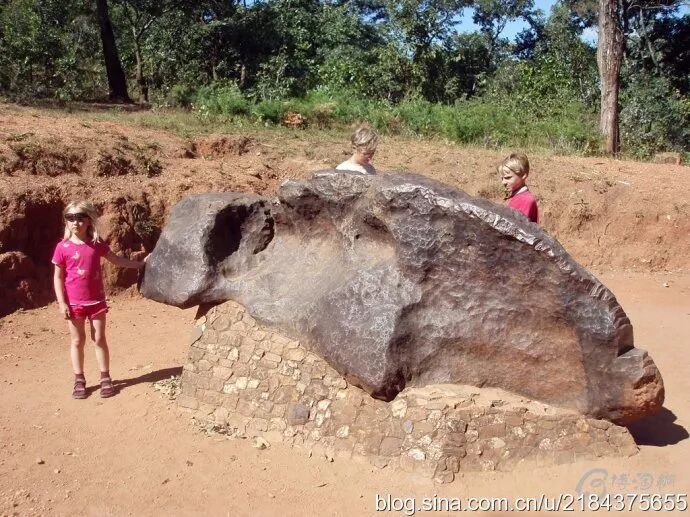 重约60吨纳米比亚霍巴陨石,作为坠落于地球的最重陨石,霍巴陨石的重量几乎是排名第二的艾尔·查科陨石的两倍。这颗陨石的表面积超过6.5平方米,重量在60吨左右。据信,在坠落地球过程中,霍巴陨石的飞行速度因与地球大气层之间发生的摩擦大大降低,使其在落地之时得以保持完整并且大部分露出地表,而不是埋入地下。其异乎寻常的扁平外形说明,这颗陨石甚至能够像漂石一样在水面上跳跃前进。