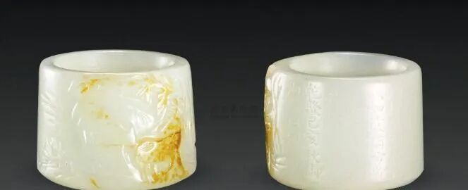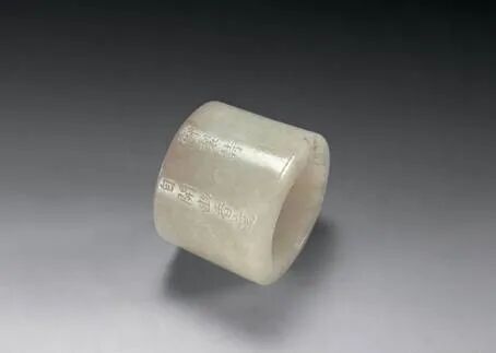 玉扳指最早之前是骑射时,用来保护手指的一种用具,后来慢慢演变成权利、地位的象征。在古代,一般都是皇亲国戚,豪门贵族才能佩戴的,佩戴玉扳指也可说是玉的帝王政治学的表象。在清朝的众多皇帝当中,许多都喜爱玉扳指,尤其是乾隆皇帝,更是与扳指有着很深的渊源,据统计乾隆皇帝为玉扳指写的诗就多达50首。从乾隆的《御制诗文集》中就可以看出乾隆皇帝甚是喜爱玉扳指。据说乾隆十七年清明前后,他有幸得到了一个玉扳指,做工精巧,于是就写下了《玉》这首诗。这也是乾隆皇帝写的第一首咏扳指的诗,后来被收录在《御制诗二集》卷三十二中。自此以后,扳指就进入到了乾隆皇帝的视野中。专家通过研究,认为乾隆皇帝对玉扳指的喜爱,是出于维护和保持满族传统文化和民族特色的需要,同时也是深受中国传统文化观念“君子比德于玉”的影响。部分珍贵的玉扳指,还会有配套的紫檀盒或是丝织布套等,用来包装好,对它进行一个保护。多方面原因综合,可以看出,乾隆皇帝对玉扳指可谓是非常的钟爱。乾隆时期各地官员为了讨好皇帝纷纷进贡玉扳指。据史书记载,乾隆四十一年春,九江关监督全德敬献了20个丝珐琅扳指,乾隆五十七年徵瑞进四个白玉扳指以及四个青玉扳指,乾隆五十九年福建巡抚浦霖分别进贡了九件碧玉扳指和白玉扳指套等等。进贡的扳指主要是被皇帝用来作为赏赐的物件的,所以没有什么特别的要求。但是乾隆自己御用的扳指,则不一样。首先,乾隆皇帝御用的扳指有固定的款式。这种固定款式主要包括膛口的大小、壁的厚薄、具体的形状等等,都是为乾隆皇帝量身定做的。其次,乾隆皇帝对御用扳指的制作过程都是十分的关注的,每一个制作步骤,常常都要亲自过问,提出自己具体的建议与要求,然后让制作工匠参照实施。正是因为这样,乾隆皇帝御用的玉扳指基本上都是由宫中的如意馆的玉工承做的,这样就更方便乾隆皇帝在极其细微的地方都能够参与指导。