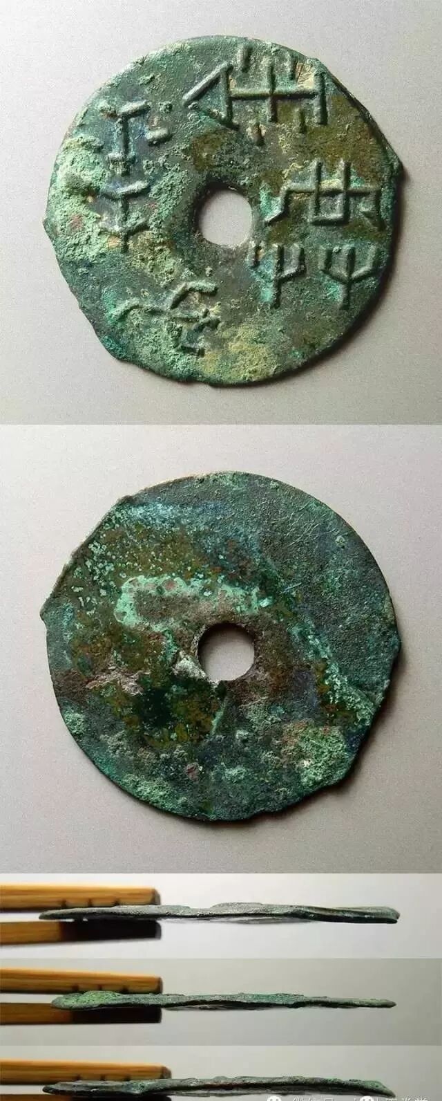 它的形状是从生产工具纺轮发展而来的。货币发展到圆钱,是在战国后期。这是货币形制的一大进步。它轻小、便于携带。体为圆形,它的孔,先圆后方;先无郭,后有郭。圆钱突破了原来各国各种的货币形制。战国后期,齐、燕和中原各国都铸有圆钱,如齐国有賹化国钱,燕国有明圆钱,两周、三晋地区有垣、共、蔺、离石等圆钱。秦国还有秦圆钱,不记地名,以“朱”、“两”记重。圆钱的出现,使货币形制逐渐趋向统一。是符合商品交换关系日益发展需要的。
