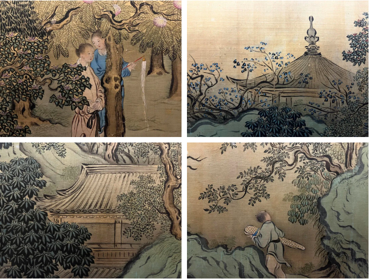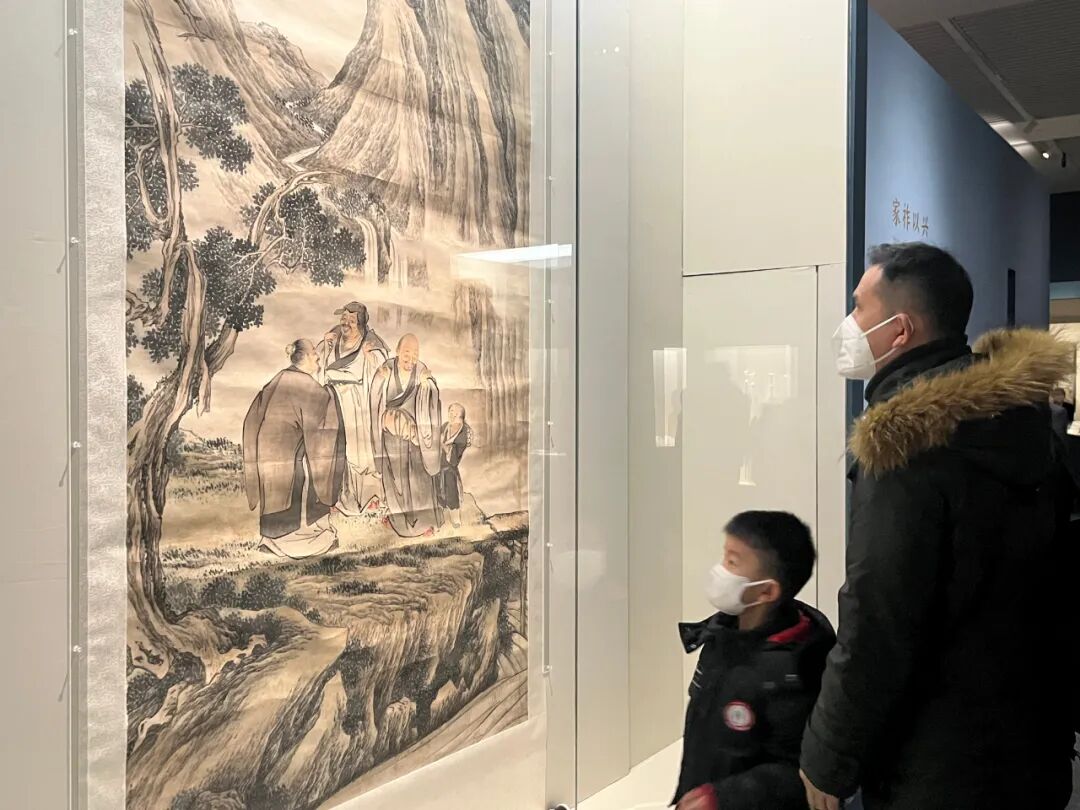 观众在金廷标绘《虎溪三笑图》轴前欣赏
